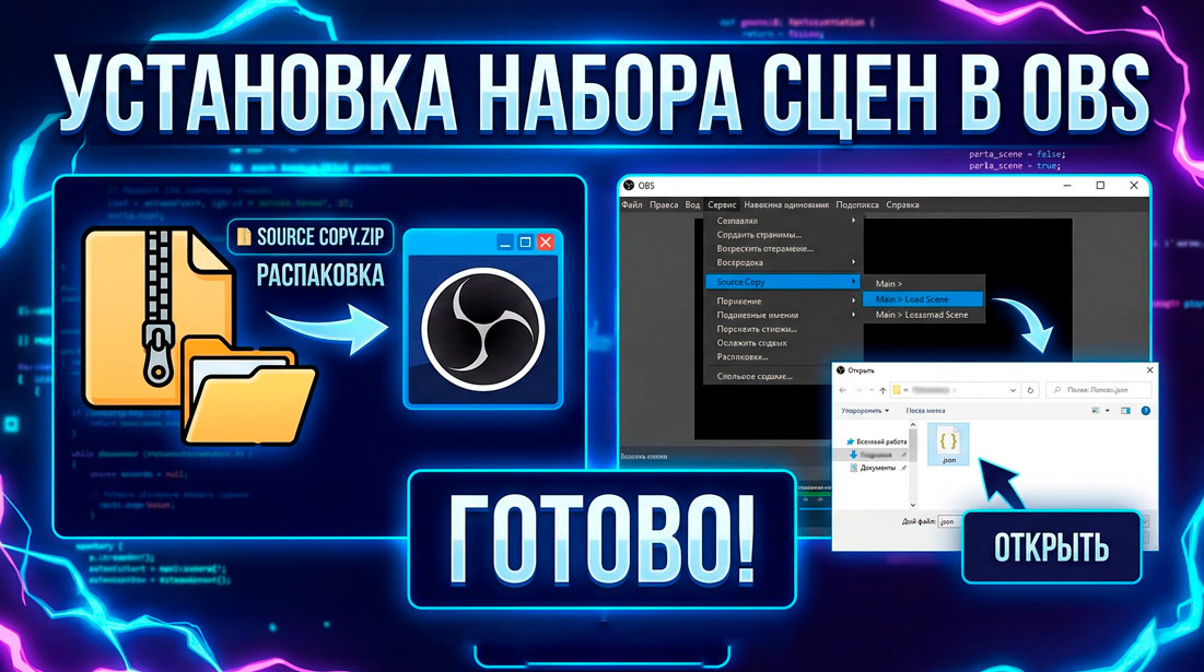 Руководство о том, как импортировать коллекцию сцен в OBS.