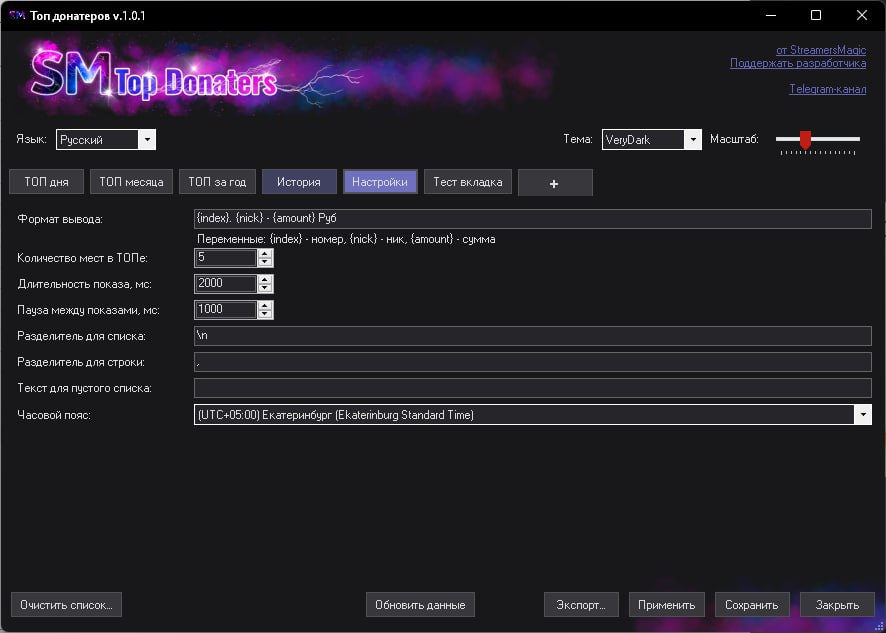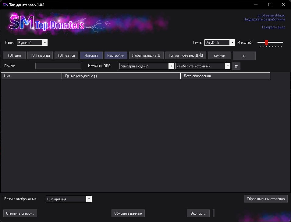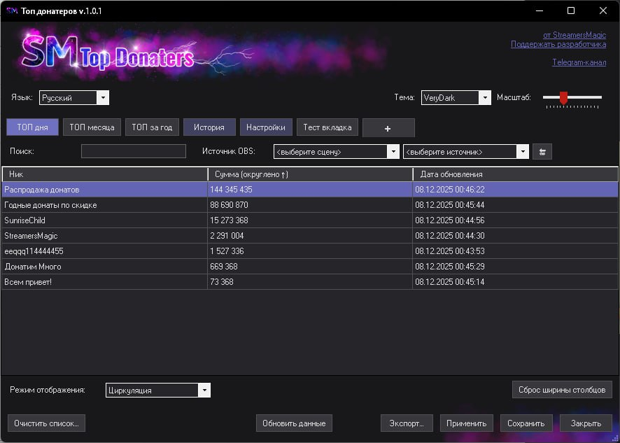 ➡️ Настроить какие данные будут выводиться в OBS (Номер по порядку, ник, сумма, любые слова/символы)