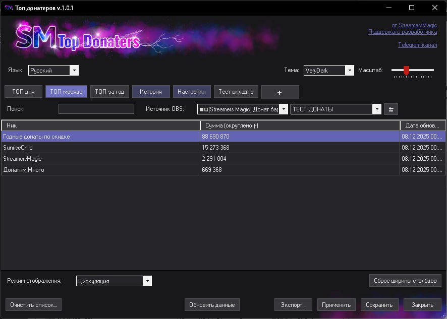 Модуль для Стримербота, который позволяет собирать любой "ТОП" с платформ которые есть в Миничате или Streamer.bot.