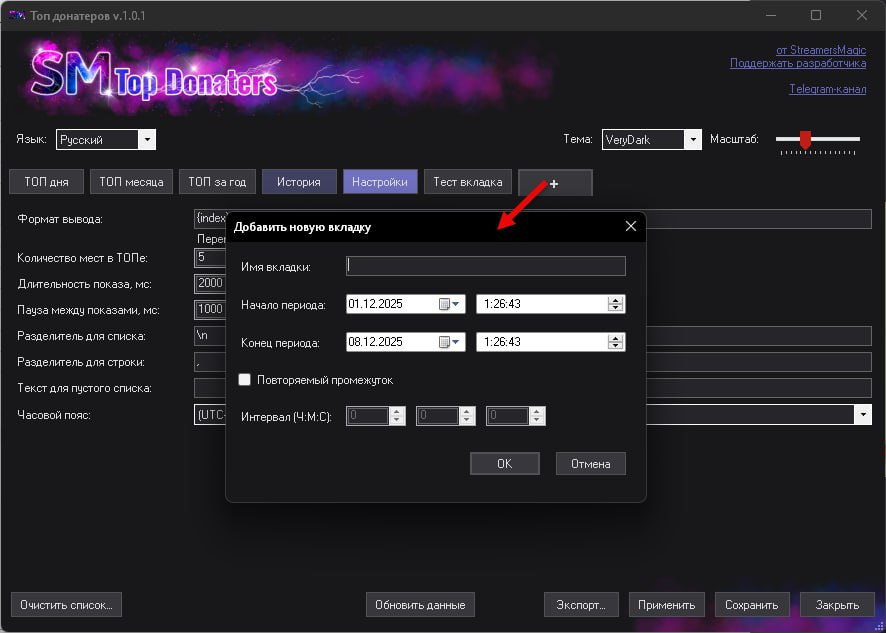 ➡️ Кастомные вкладки по времени. Можете собирать хоть "топ каждой минуты"