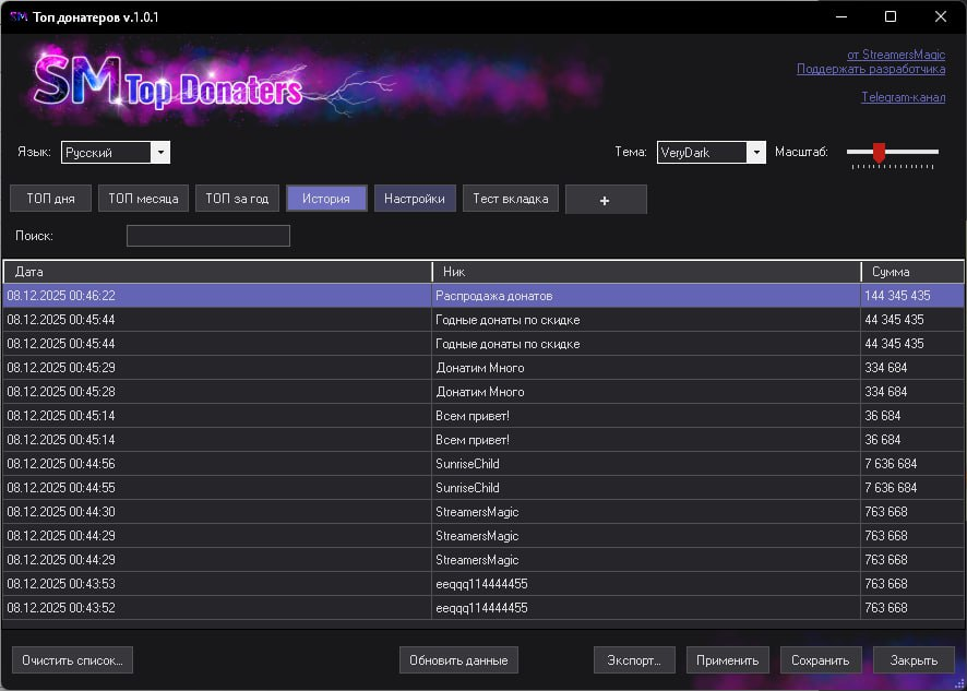 ➡️ Импорт истории донатов из MiniChat 🤩