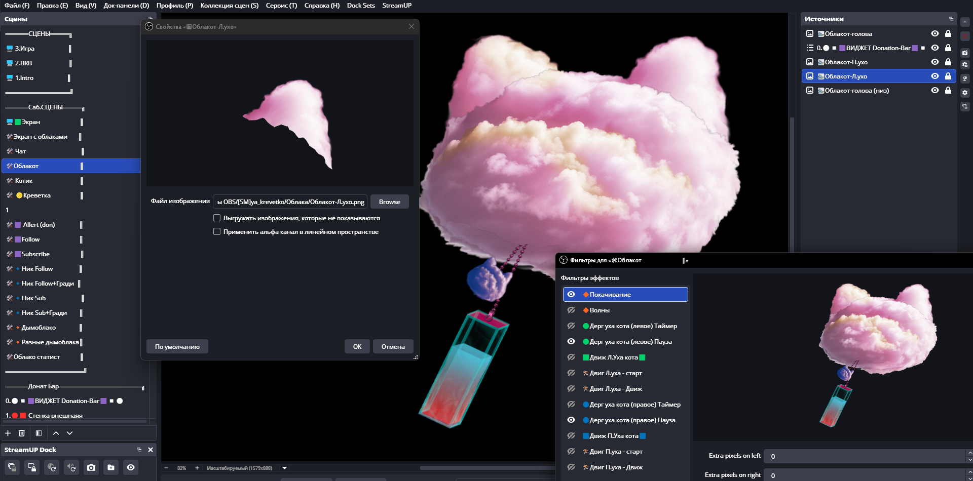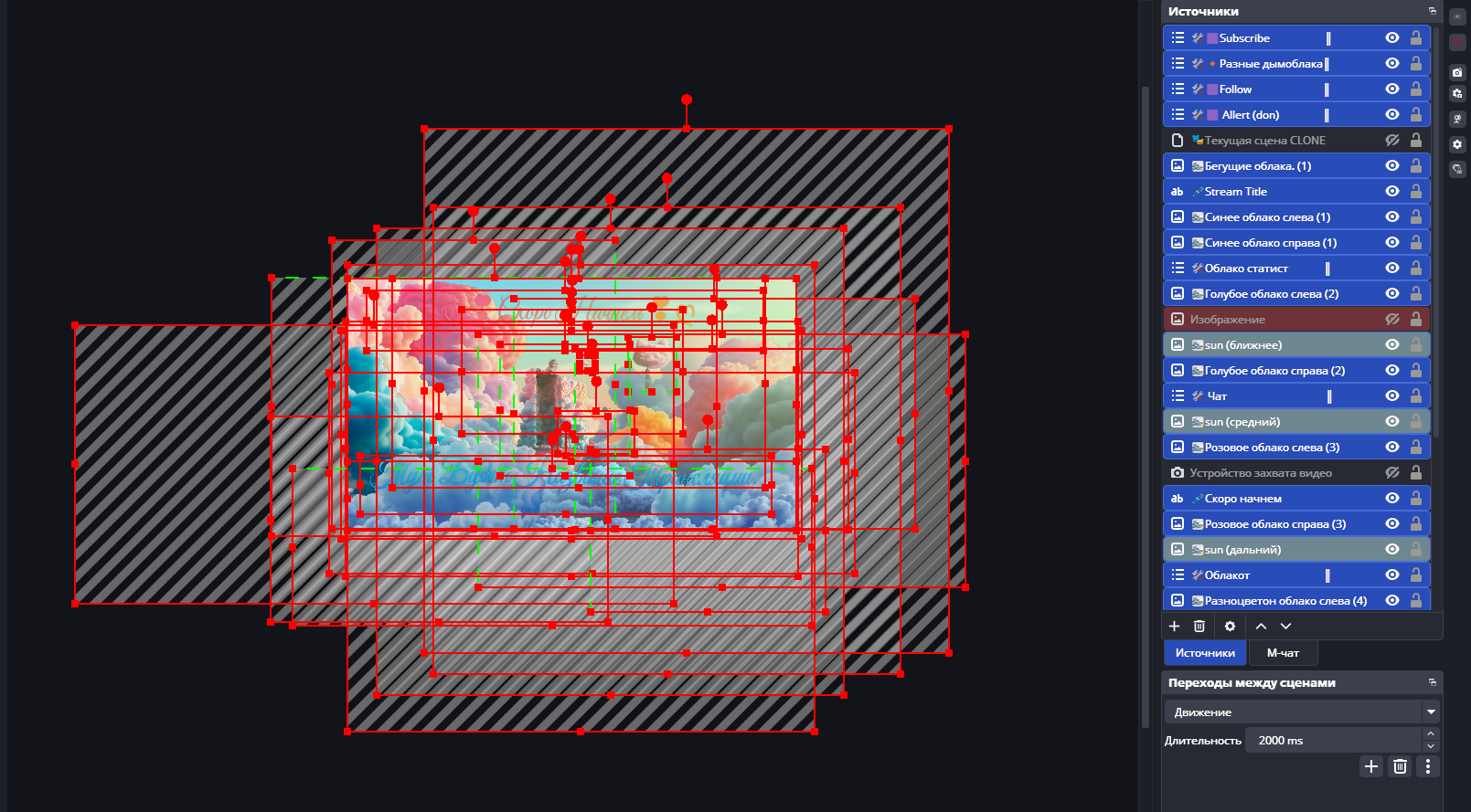 Оформление собрано из картинок и анимировано плагинами в OBS.